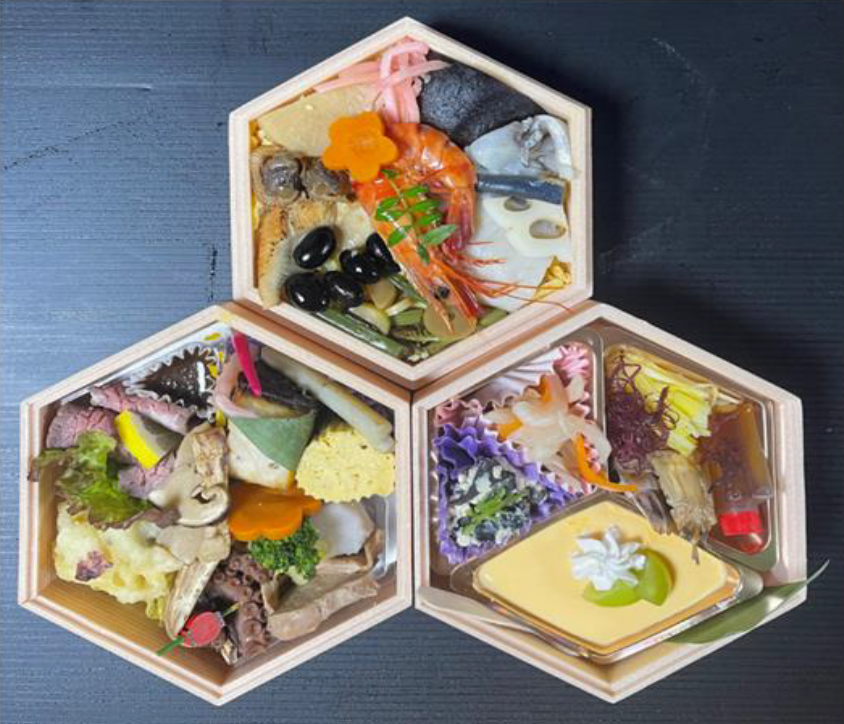 隠し寿司は、江戸時代に財政厳しき折の岡山藩主が出した「食膳は一汁一菜」という倹約令を背景に、贅沢を禁じられた庶民の知恵から生まれた郷土料理。隠し寿司をはじめ、岡山の食材をふんだんに使用したお弁当「ハレBento」をお楽しみください。
