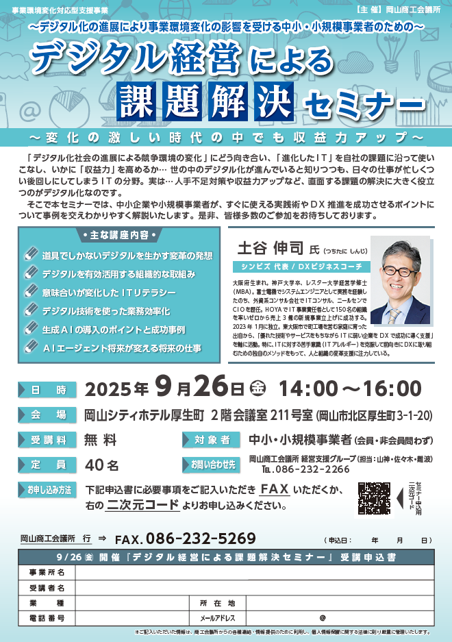 そこで本セミナーでは、中小企業や小規模事業者が、すぐに使える実践術やD X 推進を成功させるポイントについて事例を交えわかりやすく解説いたします。是非、皆様多数のご参加をお待ちしております。