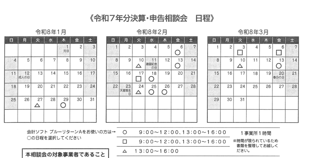 青色申告者のための「令和7年分決算・申告無料相談会」のご案内